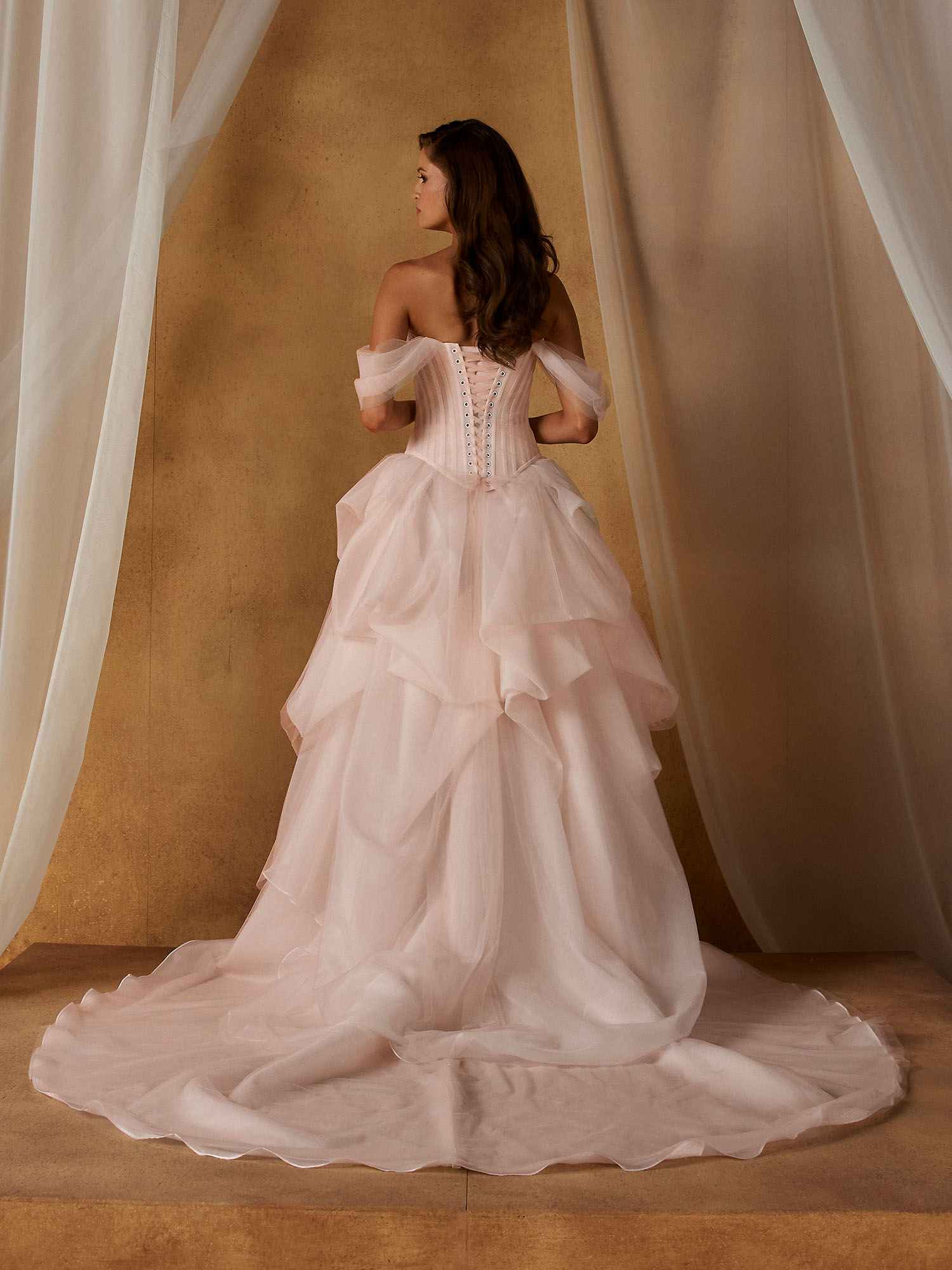 Novella Skirt is perfect to add drama and statement to your wedding day look. Designed to be styled with the Nickel Bodice, our Novella Skirt can be paired with a variety of our bridal separates. This styling freedom allowing our brides to create a completely unique and personalised bridal style. Novella is a classic A-line with playful, modern details that sits at the natural waist. Dramatic pick-ups throughout the skirt creates volume, the light tulle keeping the look airy and delicate. Available in Blush or Ivory tones for a unique look for our non-traditional brides, or a modern take on classic bridal style.